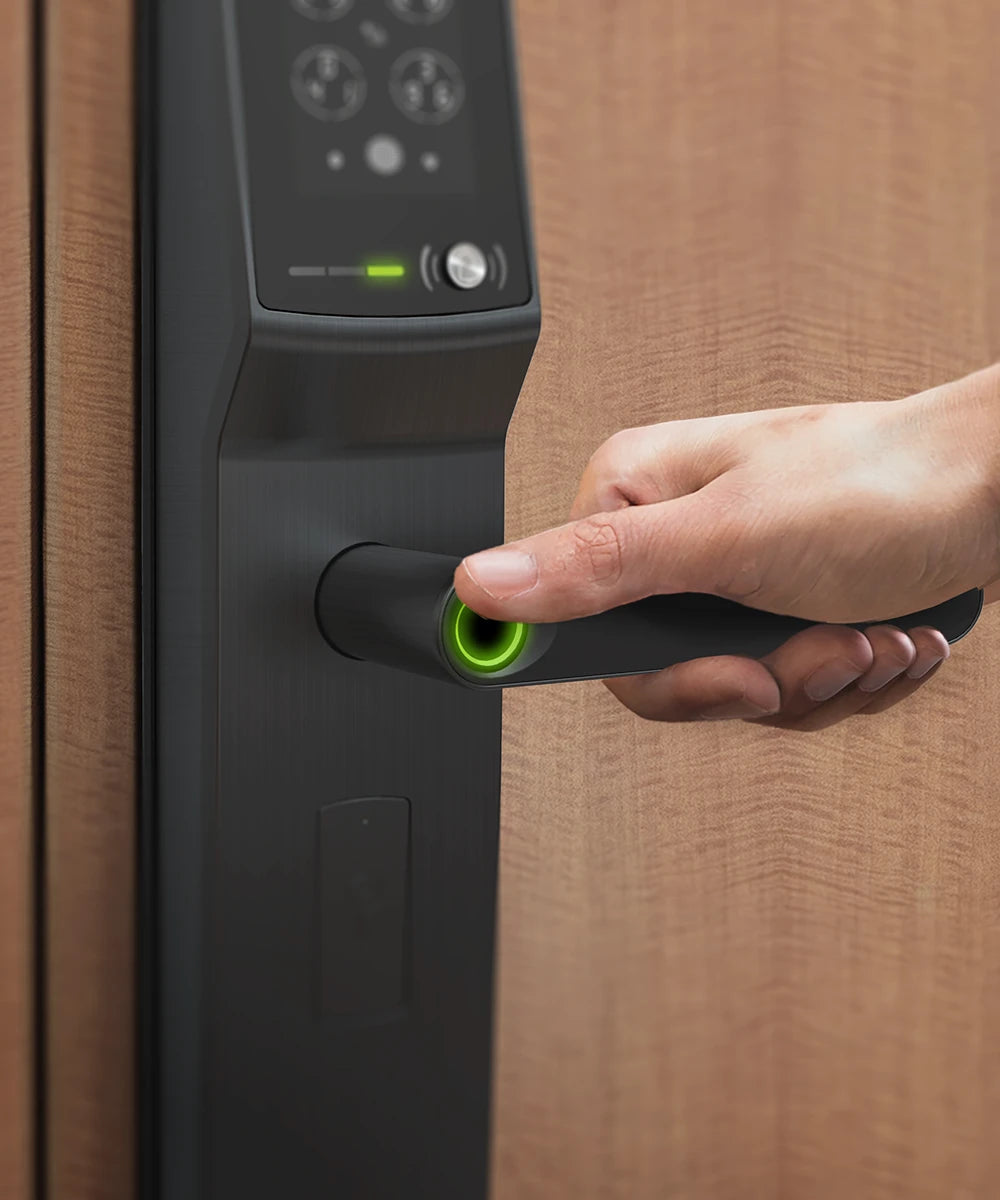 Lockly 獨家專利技術,將數字隨機組合並顯示為 4 個按鍵,每次輸入密碼後將重新排列,防止用戶密碼因被他人偷窺而外洩。新一代 3D 活體指紋感應器