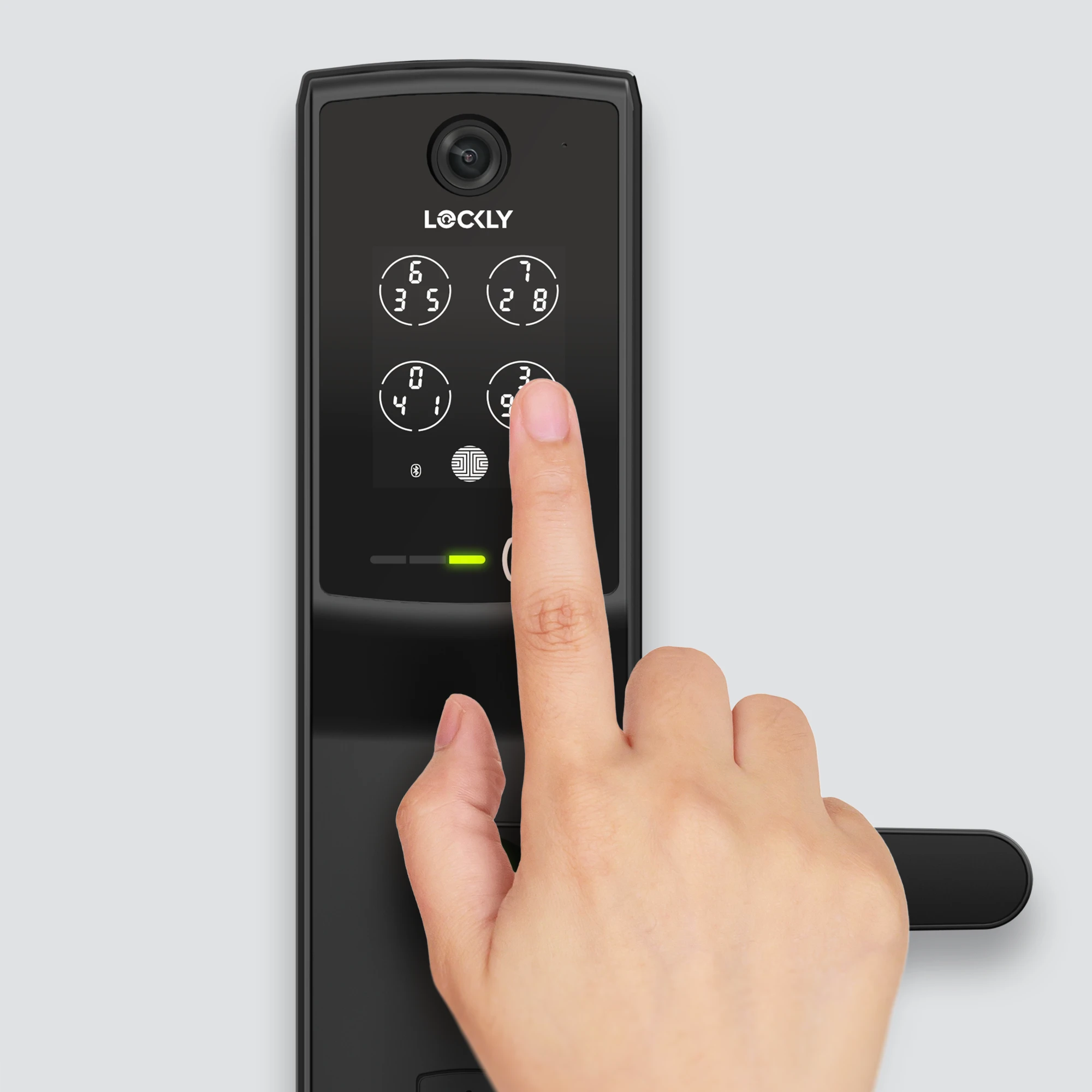 Lockly 獨家專利技術,將數字隨機組合並顯示為 4 個按鍵,每次輸入密碼後將重新排列,防止用戶密碼因被他人偷窺而外洩。
