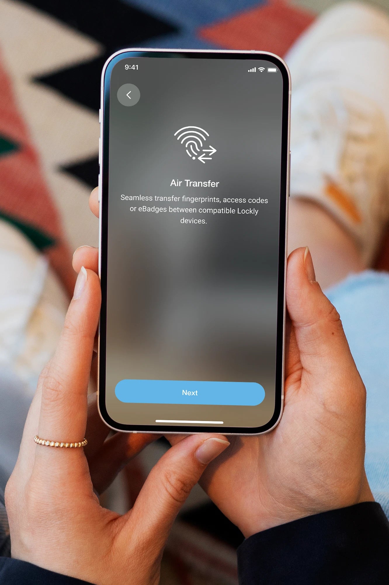 你可透過 Lockly App 使用 Lockly 獨有的 Air Transfer 用戶資料傳輸功能,從現有指定型號及版本之 Lockly 智能門鎖中快速複製並傳輸指定用戶資料到新的 Lockly 智能門鎖*。過程快捷安全,非常便利。