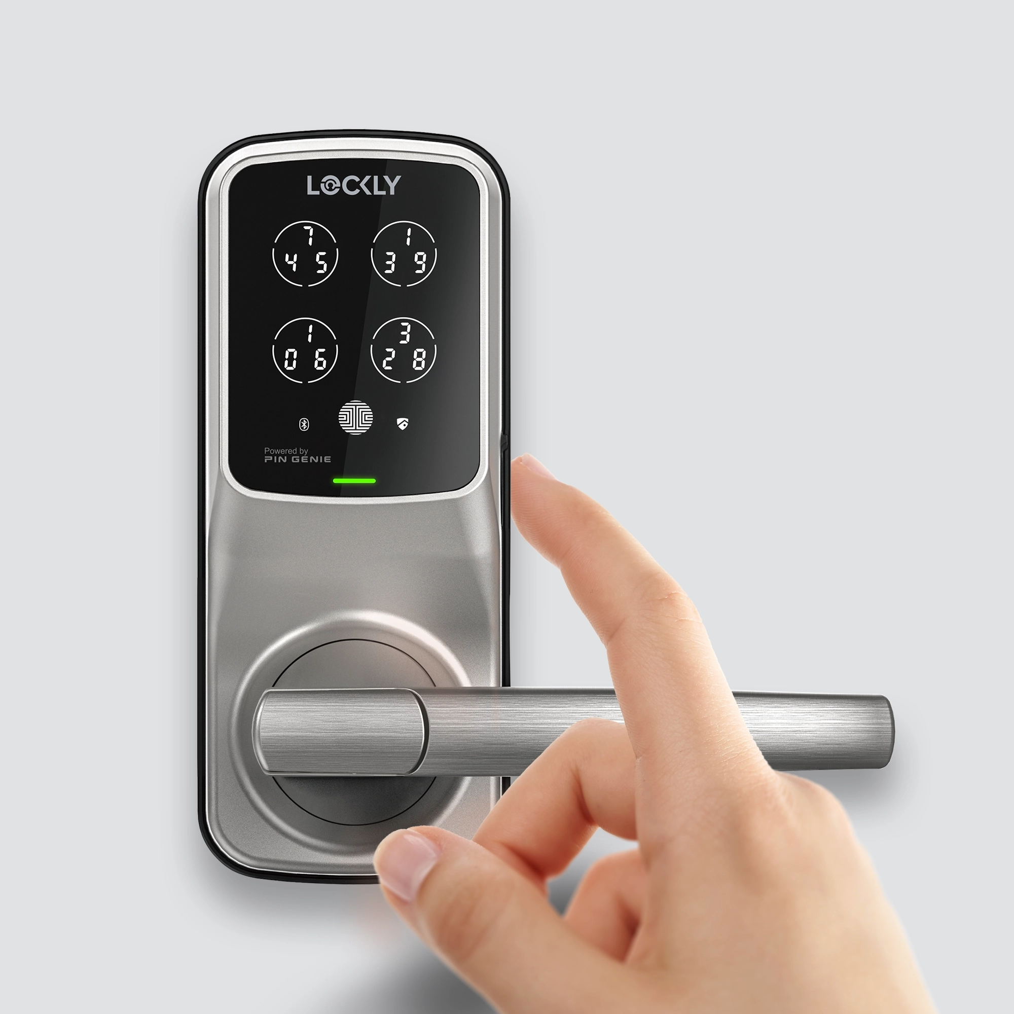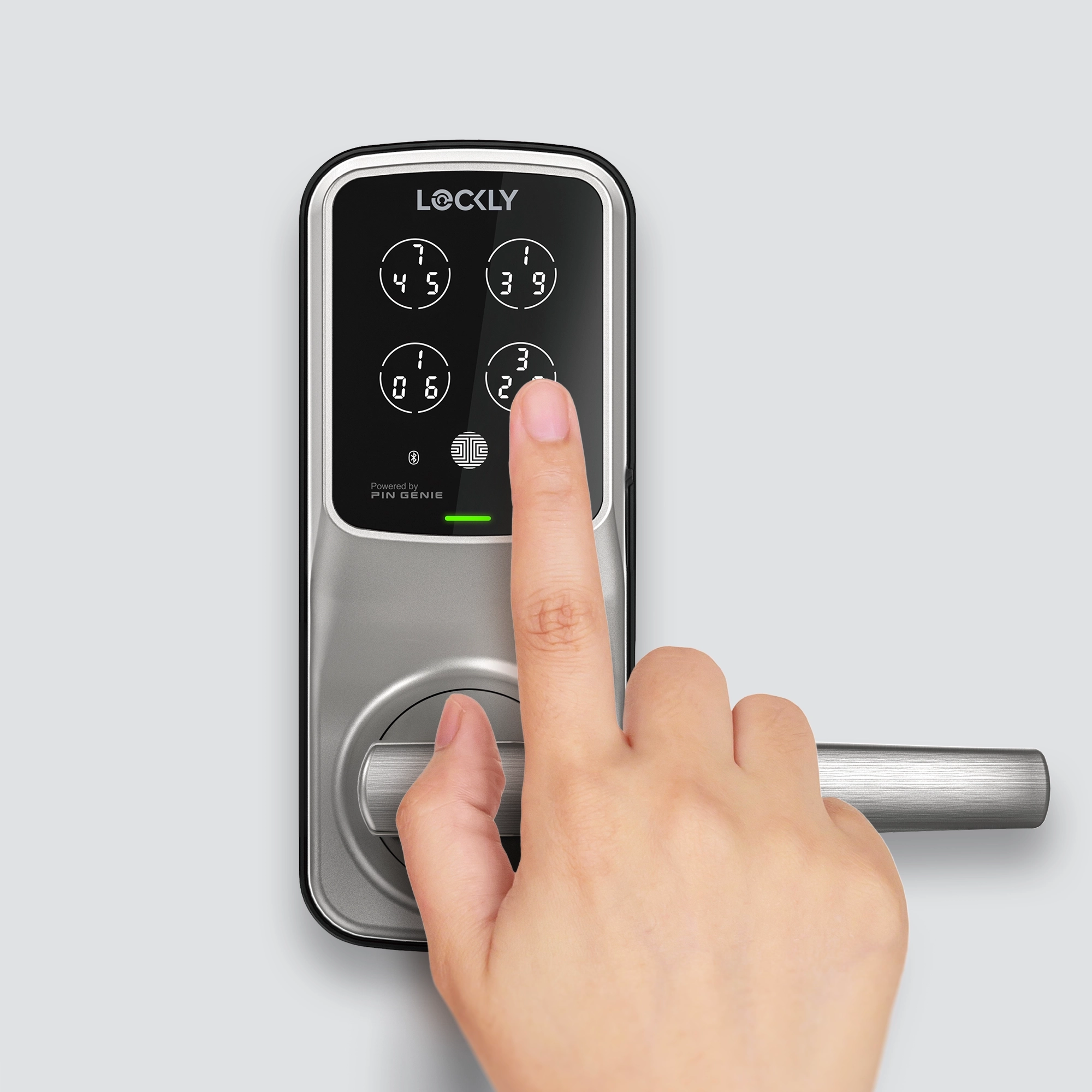 Lockly 獨家專利技術,將數字隨機組合並顯示為 4 個按鍵,每次輸入密碼後將重新排列,防止用戶密碼因被他人偷窺而外洩。