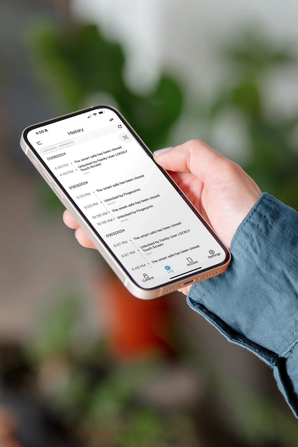 透過保險箱的閞關紀錄,你可輕鬆追蹤或識別任何異常狀況。令你能在忙於處理其他事情的同時,仍然緊貼保險箱狀態,確保貴重物品的安全。