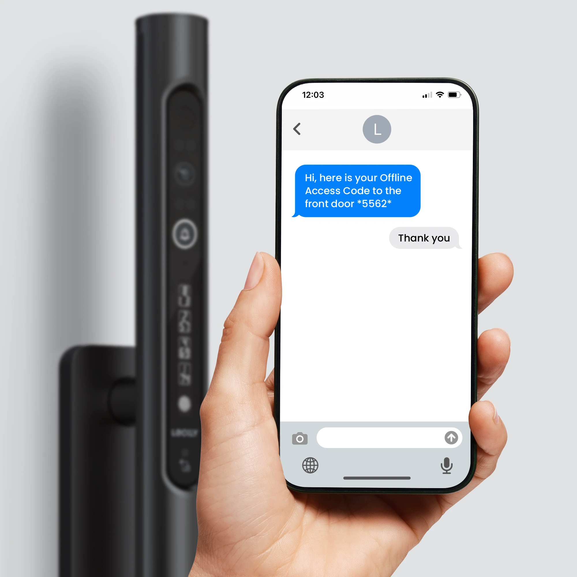 就算在門鎖沒有連接網絡的情況下,你仍可透過 Lockly Home App 遙距設置「一次性」或「有限性」神奇離線密碼 OAC*,授權訪客透過該密碼解鎖,既簡單又安全。