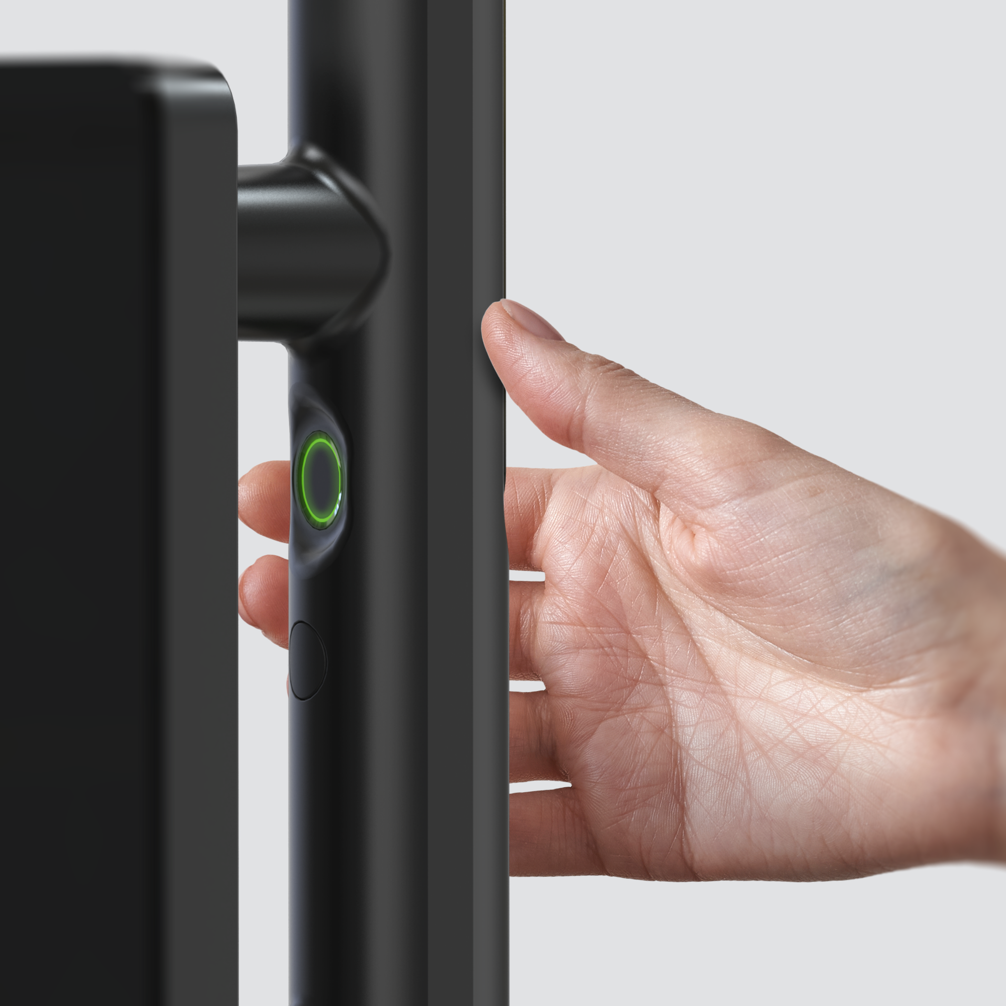 採用大膽創新的設計理念,利用修長的圓柱形把手設計,從外表上淡化智能門鎖固有的「科技感」及「存在感」,讓其完美「隱身」成為大門的其中一部份,維持整個空間設計的和諧與平衡,更可契合不同的設計風格。