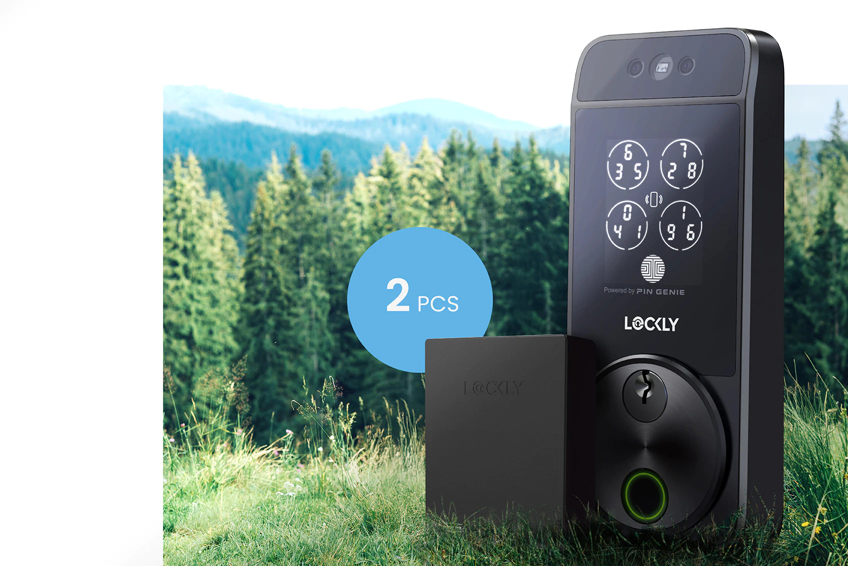 ⼈臉識別技術 + Apple Home Key + 內建 Wi-Fi + 充電式鋰電池 + PIN Genie™ 防偷窺密碼 + 3D 活體指紋