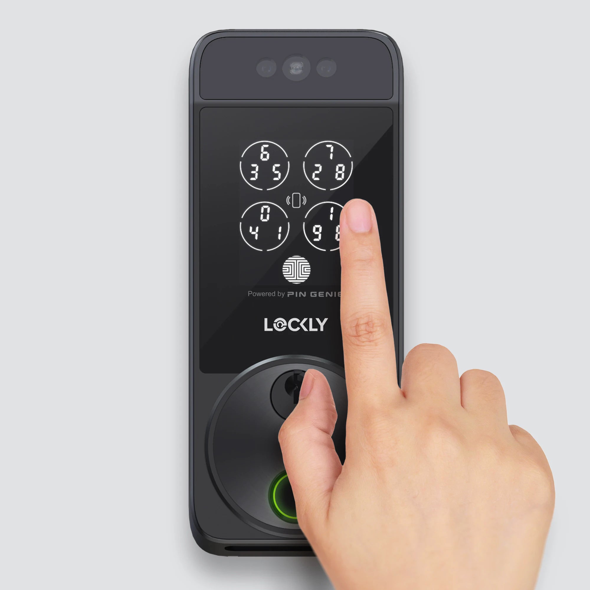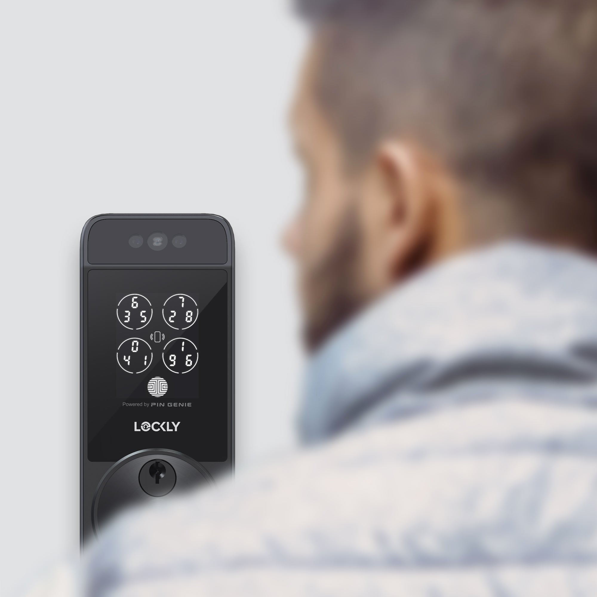 Lockly 獨家專利技術,將數字隨機組合並顯示為 4 個按鍵,每次輸入密碼後將重新排列,防止用戶密碼因被他人偷窺而外洩。