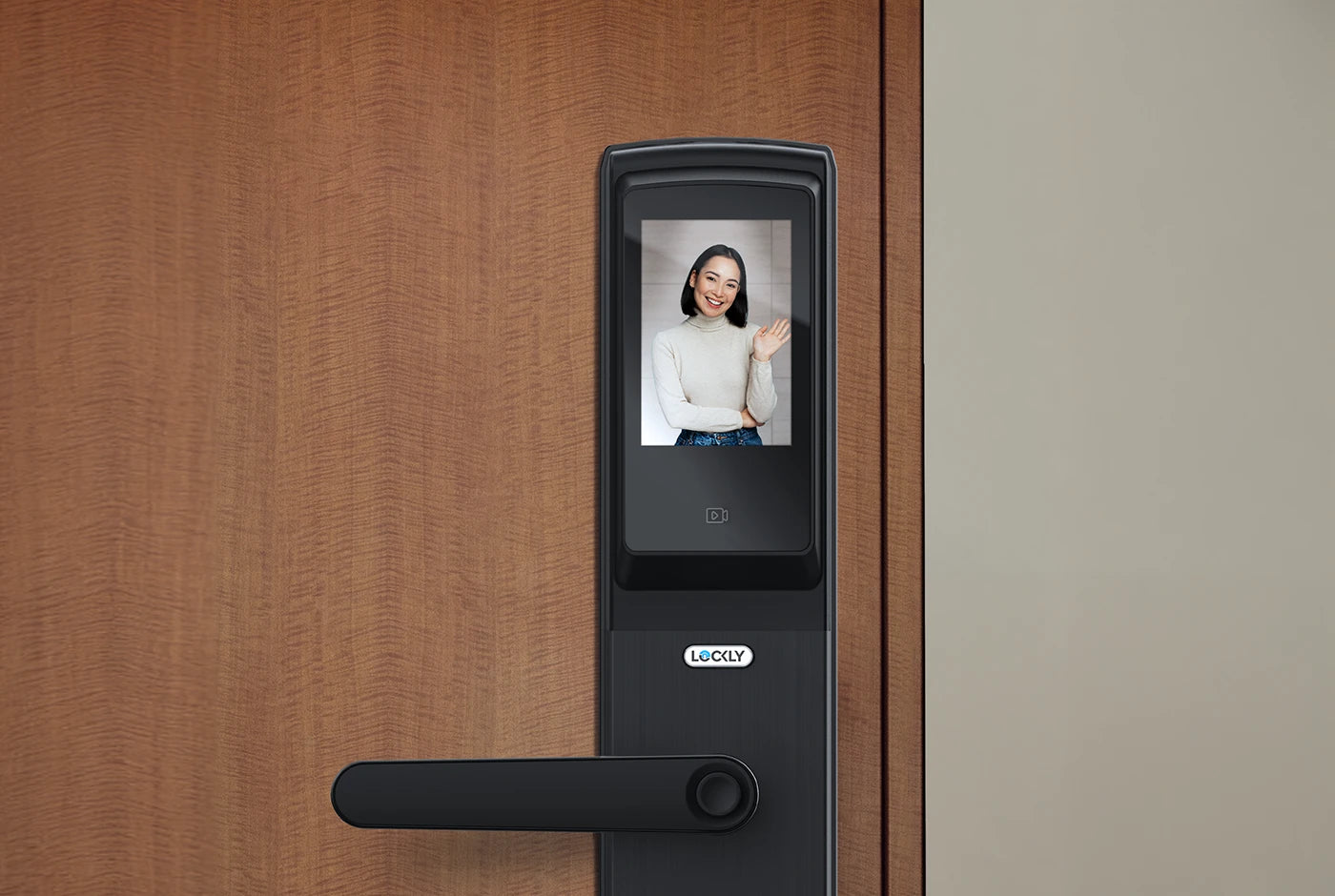 配備 Full HD 全高清廣角鏡頭及智慧門鈴,當有訪客按下門鈴時,用戶除可透過視像功能確認其身份,亦可與他對話,並透過Lockly App進行遙距解鎖,不受地域所限。