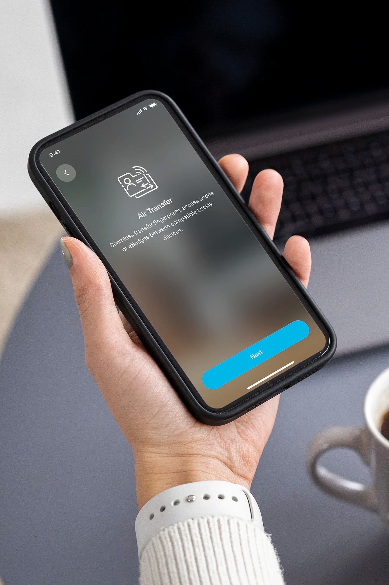 你可透過 Lockly Home app 使用 Lockly 獨有的 Air Transfer 用戶資料傳輸功能,從指定型號及版本之 Lockly 智能門鎖中快速複製並傳輸指定用戶資料⋈到新的 Lockly 智能門鎖*。過程快捷安全,非常便利。