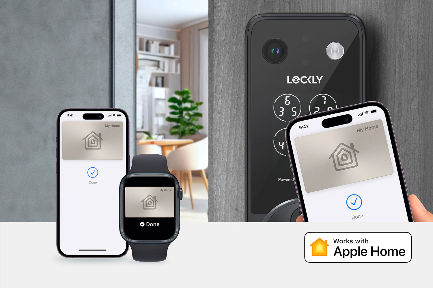 只需以 iPhone 或 Apple Watch 輕拍 Lockly Vision Zeno Series 即可快速解鎖。你更可使用 Apple Home 應用程式以 Siri 解鎖或增加自動化的設定。