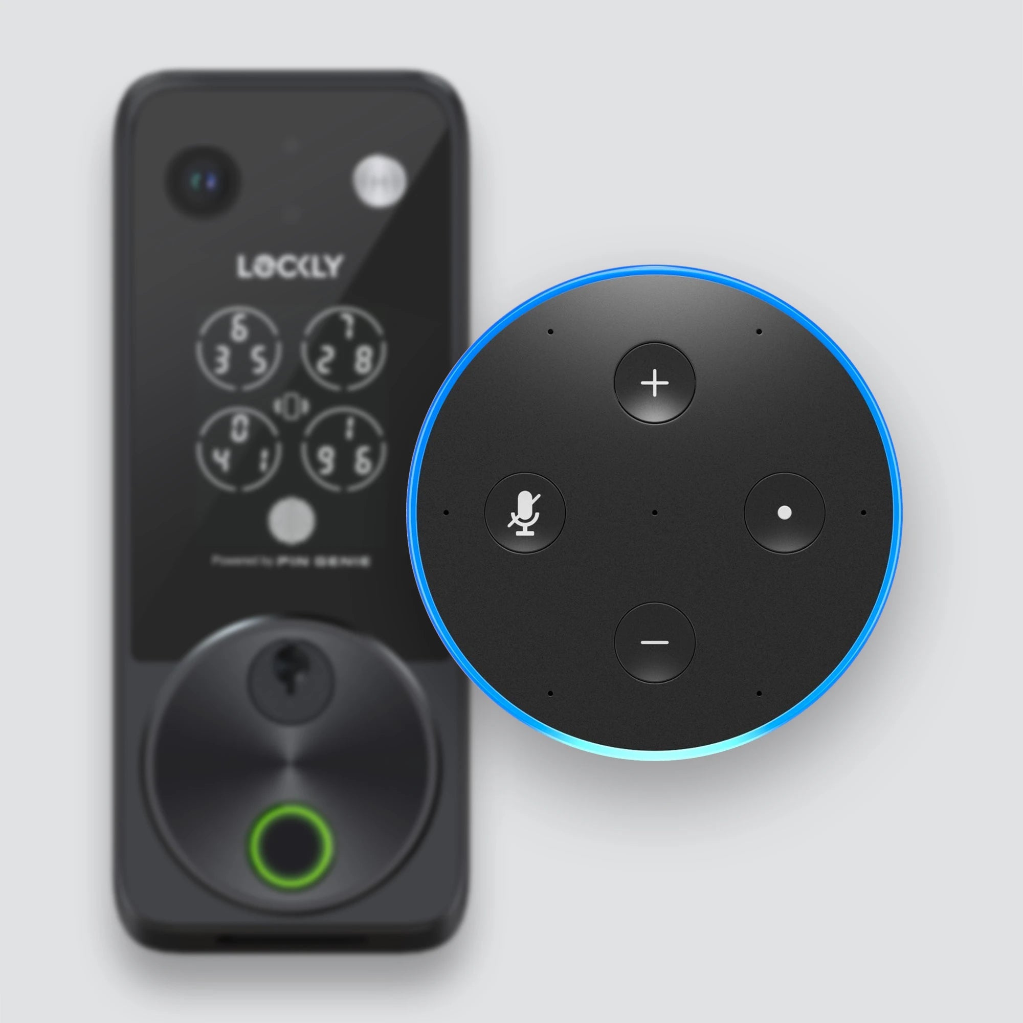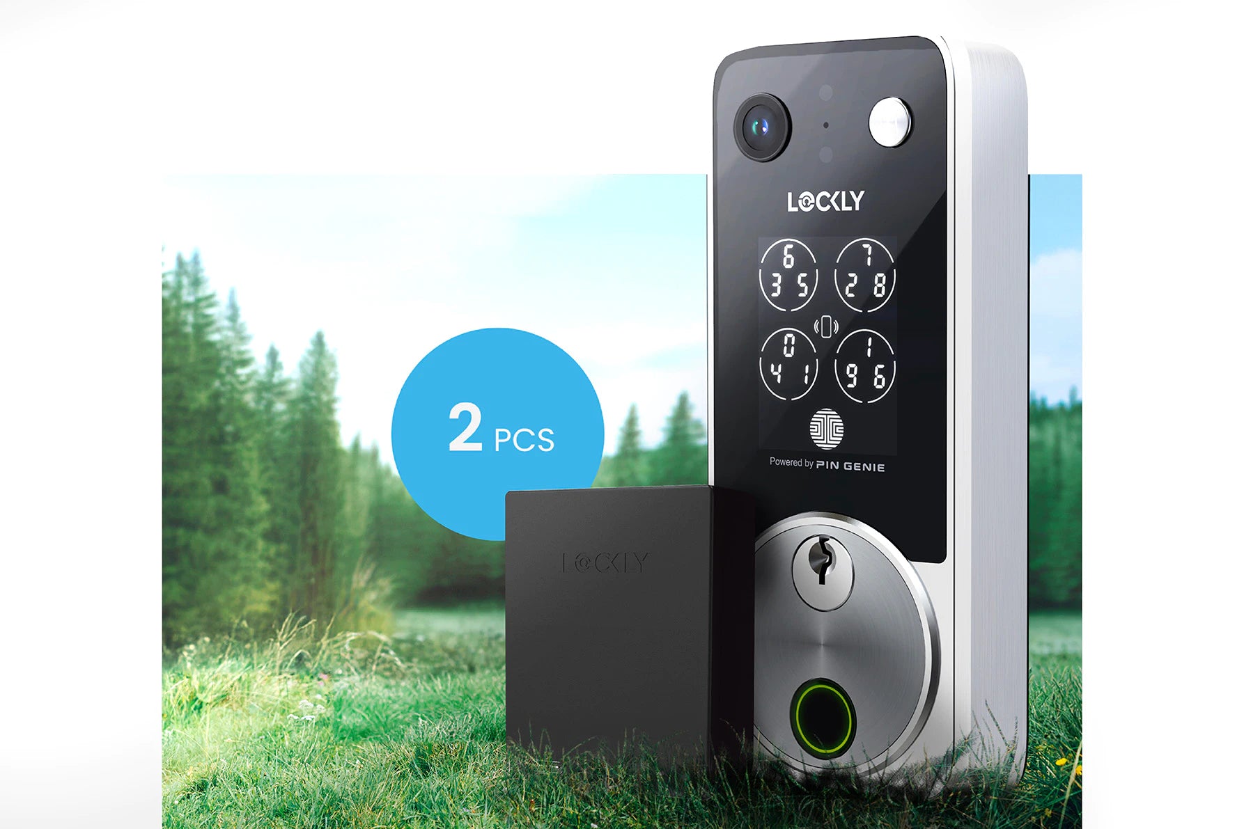 可對話智慧視像門鈴 + Apple Home Key + 連接 Wi-Fi + 充電式鋰電池 + PIN Genie™ 防偷窺密碼 + 3D 活體指紋