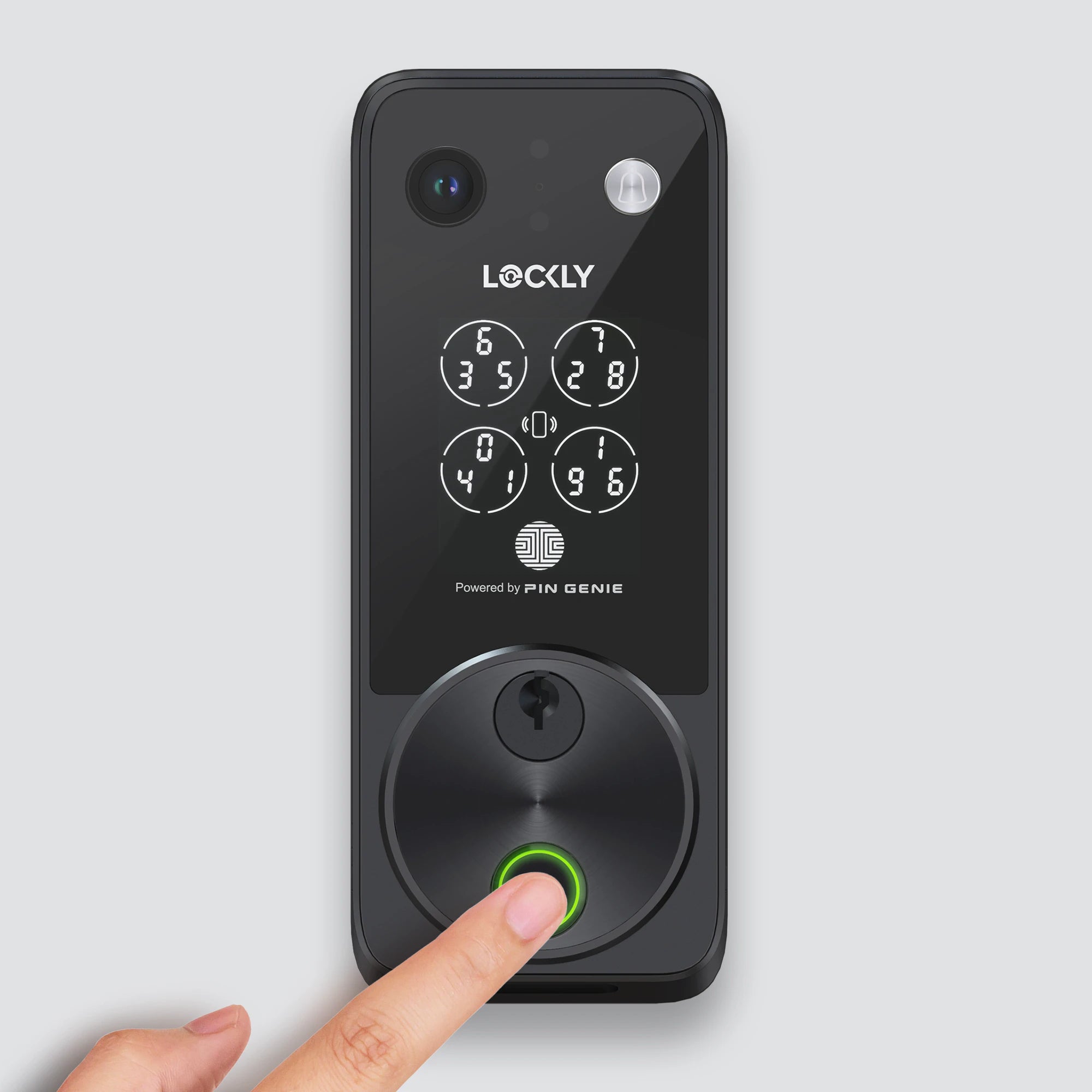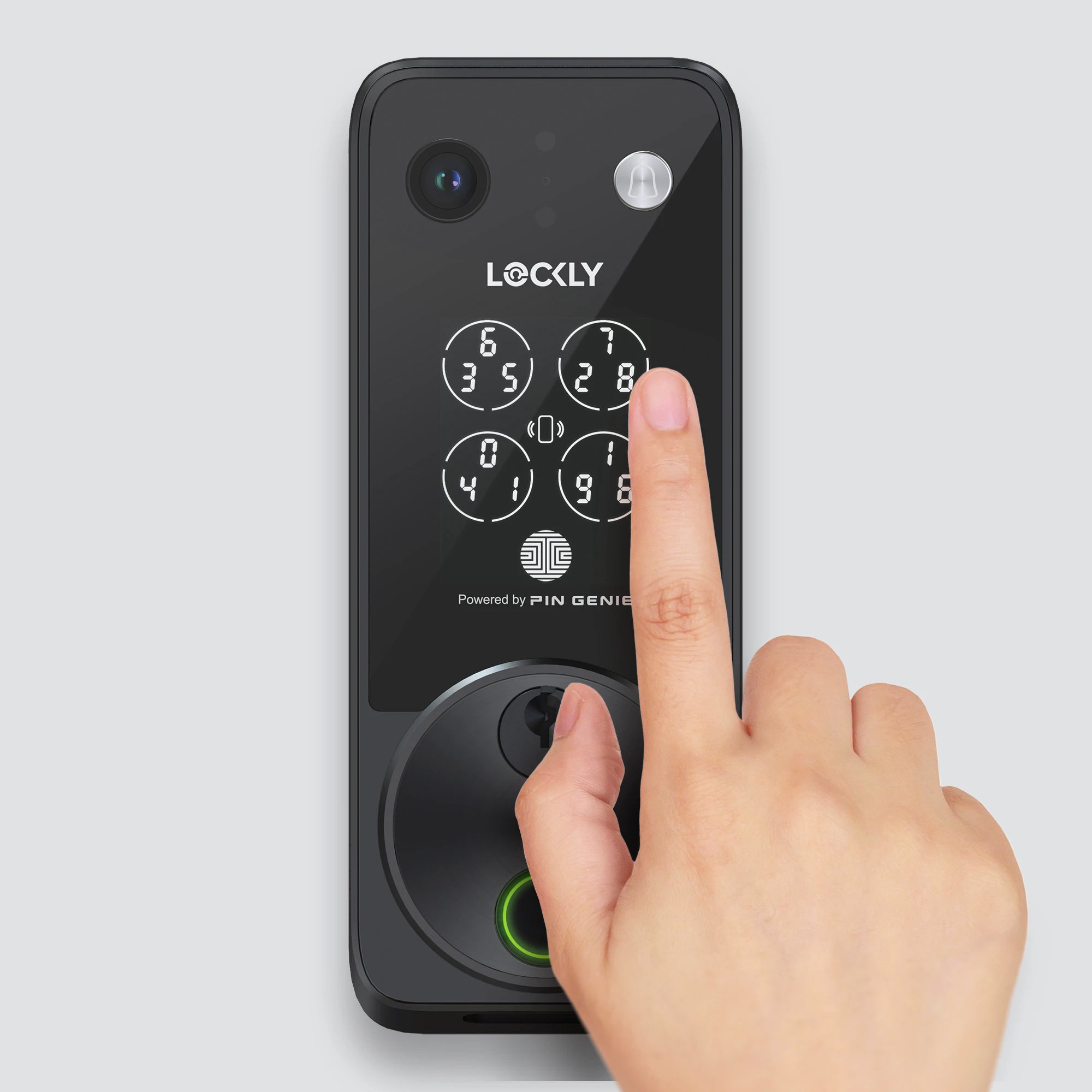Lockly 獨家專利技術,將數字隨機組合並顯示為 4 個按鍵,每次輸入密碼後將重新排列,防止用戶密碼因被他人偷窺而外洩。